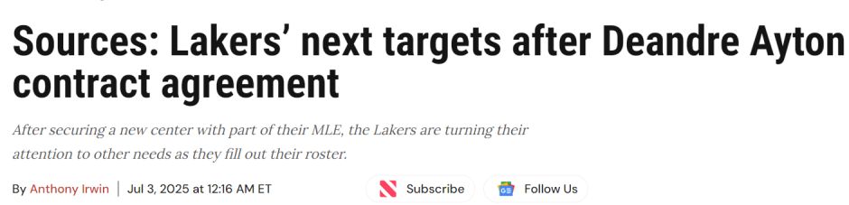 尽管艾顿是目前市场上最具天赋的大个子球员,但有消息称,湖人队内部对于他是否应该担任首发中锋存在一定分歧。理想情况下,他们希望能签下一位天赋与艾顿相近、但技能特点不同的球员——尤其是具备拉开进攻空间能力的球员。在描述他们对中锋位置的引援意图时,最常被提及的关键词是“深度”。