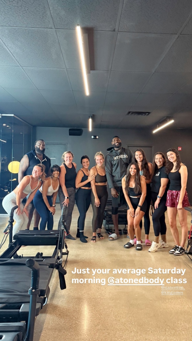 “今早勒布朗过来练习了普拉提,不知怎的,这一切感觉都再正常不过了。就是伟大。”该健身馆老板写道。